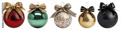 Naklejka premium PNG Glittering festive holiday ornaments, element set on transparent background