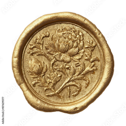 Fototapeta premium PNG Golden floral wax seal design.
