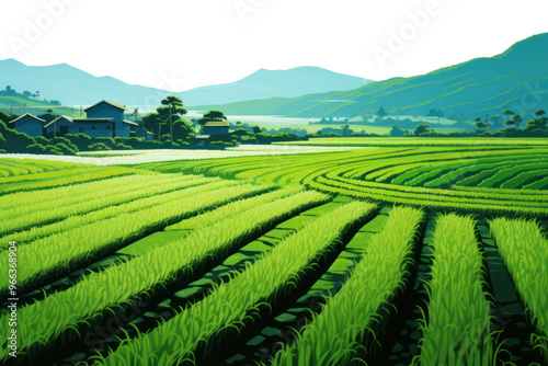 Obraz premium PNG Green rice field abstract background agriculture outdoors nature.