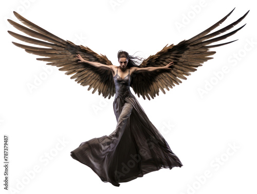 © Rawpixel.com, Naklejka premium PNG Harpy Lady angel bird white background.