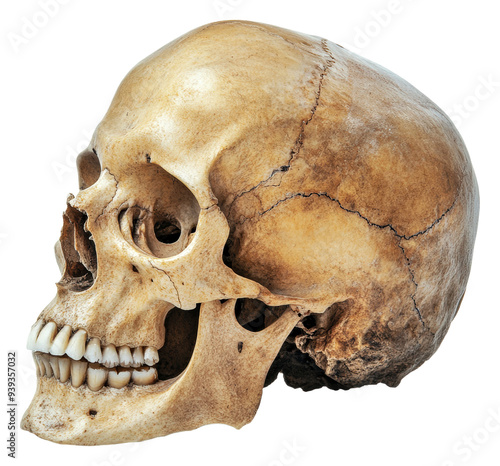 Fototapeta premium PNG Human skull displayed in a museum setting