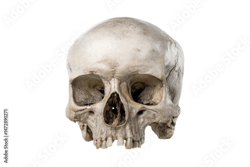 © Happy Carrot, Obraz premium PNG Human skull front view on black background: detailed bone structure anatomy
