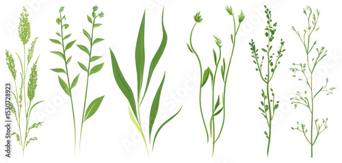 © Rawpixel.com, Naklejka premium PNG Illustrated green botanical herbs, element set on transparent background
