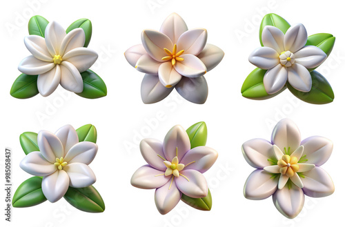 © gunzexx png and bg, Naklejka premium PNG jasmine flower 3d collection, in cartoon style minimal on transparent, white background, isolate