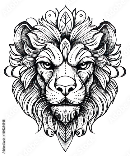 © Rawpixel.com, Obraz premium PNG Lion face art illustration tattoo.
