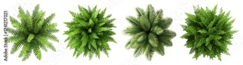 Naklejka premium PNG Lush green ferns top view, element set on transparent background