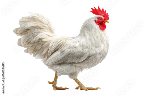 Fototapeta premium PNG Majestic white rooster with red comb on black background