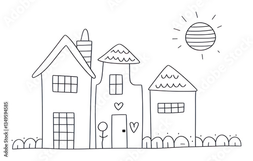 Fototapeta premium PNG Minimal illustration of house drawing sketch doodle.