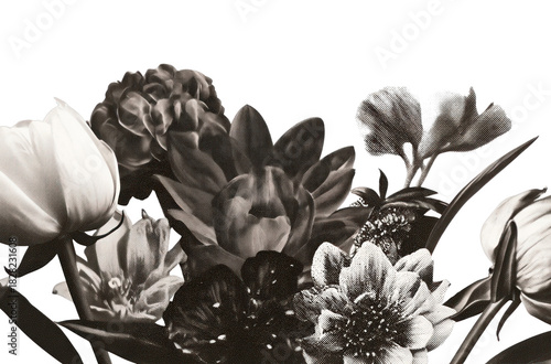 © Rawpixel.com, Naklejka premium PNG Monochrome floral elegance desktop wallpaper.