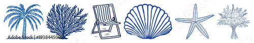 © Rawpixel.com, Naklejka premium PNG Nautical-themed blue line art on transparent background