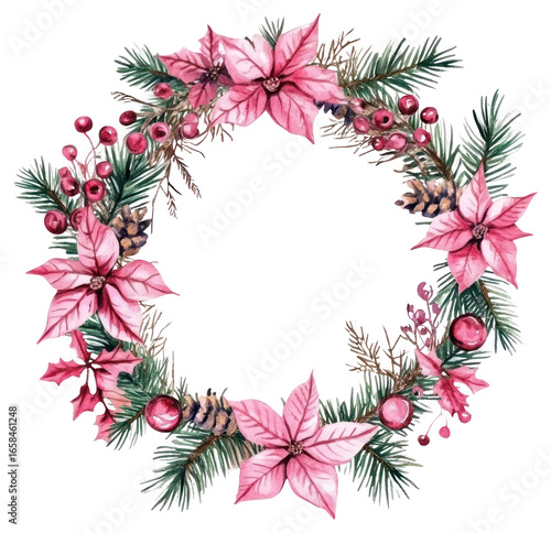 Obraz premium PNG Pink christms frame illustration watercolor wreath.