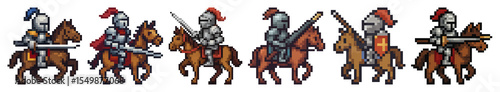Obraz premium PNG Pixelated medieval knights on horseback, element set on transparent...