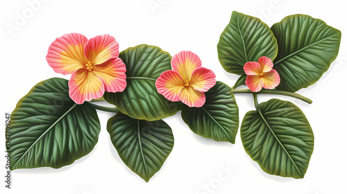 © Thiago, Obraz premium Png primrose flower leaves paper leaf. Primal Luster. Illustration