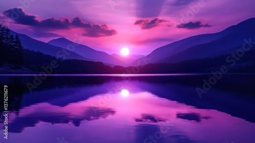 © Johannes, Fototapeta premium PNG Purple evening sky clouds pastel view. illustration