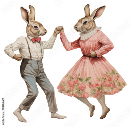 Obraz premium PNG Rabbit couple characters dancing drawing sketch animal