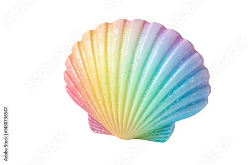 © Vladislav, Fototapeta premium PNG Rainbow gradient seashell with glitter effect on white background