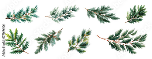 Fototapeta premium PNG Realistic evergreen pine branches illustration, element set on transparent background