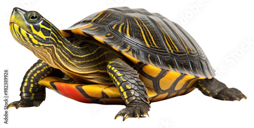 Obraz premium PNG Red-eared slider turtle reptile animal white background.