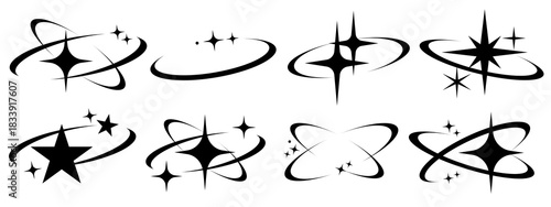 Fototapeta premium PNG Retro star swirl vector designs, element set on transparent background