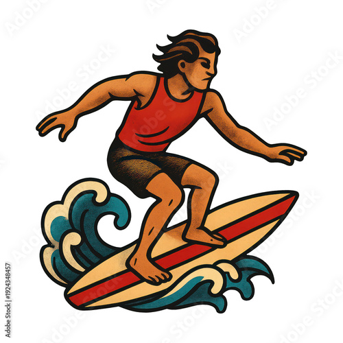 © Rawpixel.com, Fototapeta premium PNG Retro surfer riding wave