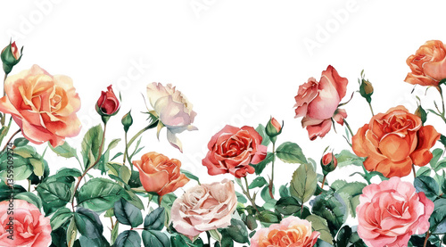 Fototapeta premium PNG Roses border painting pattern flower.
