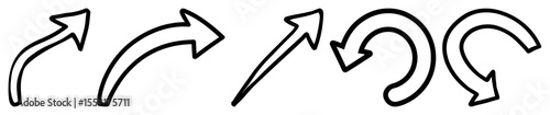 Fototapeta premium PNG Set of five hand-drawn arrows in various curved shapes element set on...
