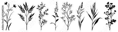 Naklejka premium PNG Silhouette botanical plant illustrations, element set on transparent...