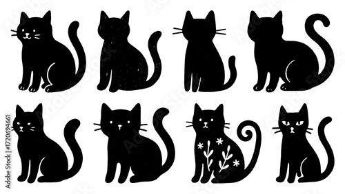 © Rawpixel.com, Fototapeta premium PNG Silhouette cats vector collection, element set on transparent background