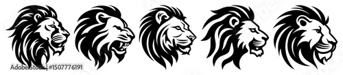 © Rawpixel.com, Fototapeta premium PNG Silhouette lion head logo wildlife stencil animal transparent background.