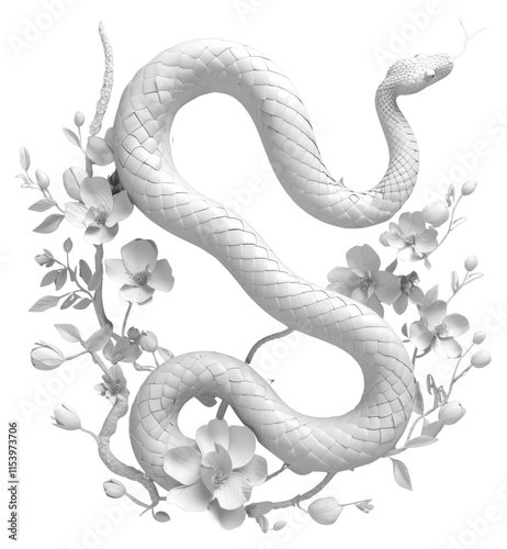 © Rawpixel.com, Obraz premium PNG Snake made with paper illustration floral white.
