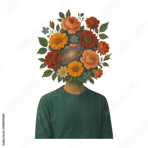 © Rawpixel.com, Fototapeta premium PNG Surreal floral head portrait art.