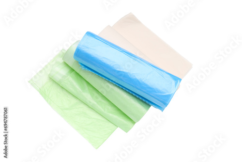 Fototapeta premium PNG, Three rolls of trash bags, isolated on white background