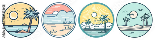 Obraz premium PNG Tropical beach sunset illustrations, element set on transparent background