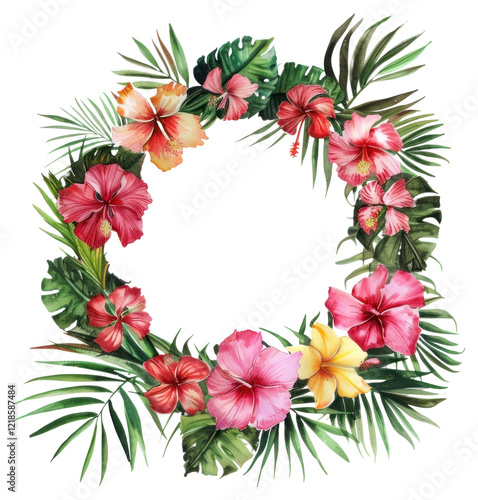 © Rawpixel.com, Obraz premium PNG Tropical floral wreath illustration
