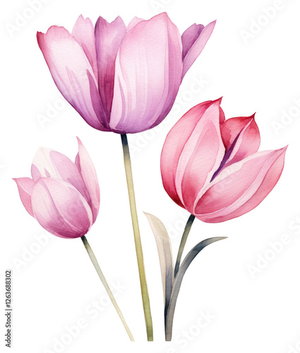 Fototapeta premium PNG Tulip flower in Watercolor style blossom petal plant.
