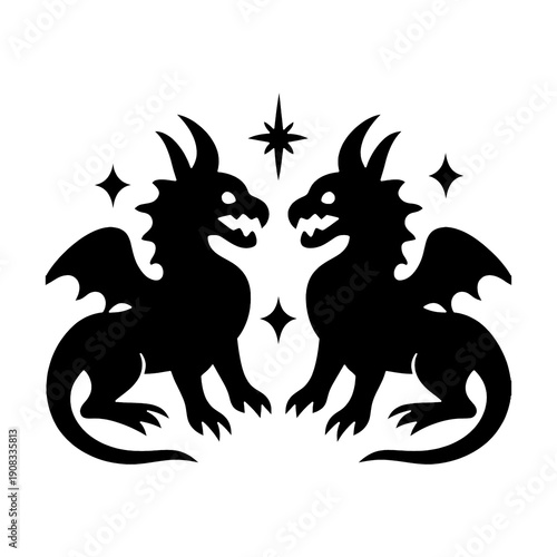 Fototapeta premium PNG Twin dragons silhouette mystical design.