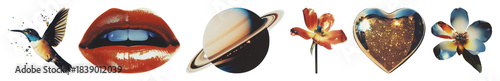 Obraz premium PNG Vibrant cosmic floral collage, element set on transparent background