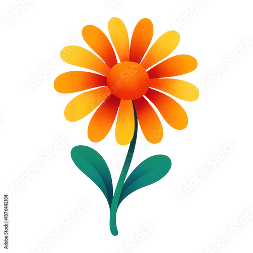Fototapeta premium PNG Vibrant daisy illustration with leaves.