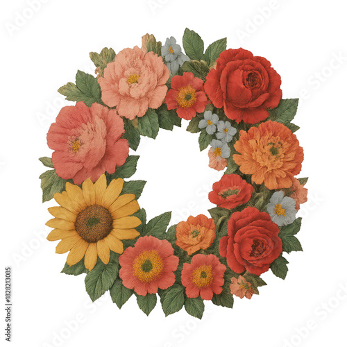 © Rawpixel.com, Naklejka premium PNG Vibrant floral wreath illustration