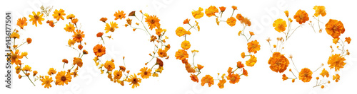 Fototapeta premium PNG Vibrant floral wreaths in autumn, element set on transparent background