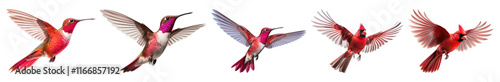 Fototapeta premium PNG Vibrant hummingbirds in flight, isolated element set, transparent background
