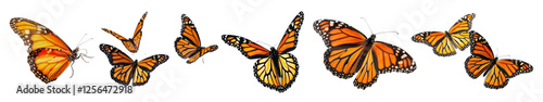Fototapeta premium PNG Vibrant monarch butterflies in flight, element set on transparent background