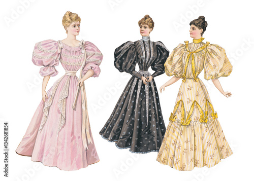 © Rawpixel.com, Fototapeta premium PNG Victorian women, vintage fashion illustration, transparent background. Remixed