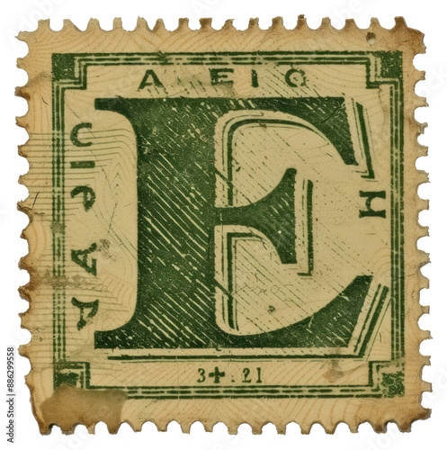 Fototapeta premium PNG Vintage alphabet E postage stamp.