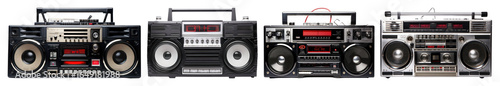 Fototapeta premium PNG Vintage boomboxes in a row, element set on transparent background
