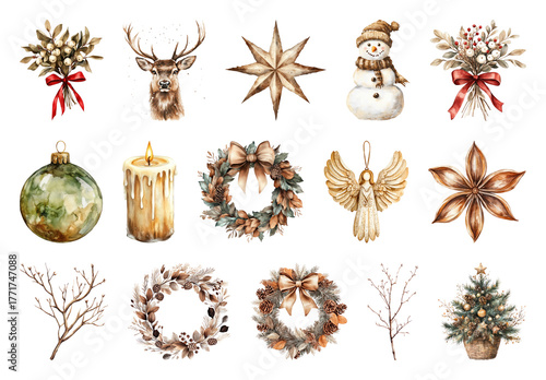 Obraz premium PNG Vintage Christmas holiday decoration illustrations, element set on...