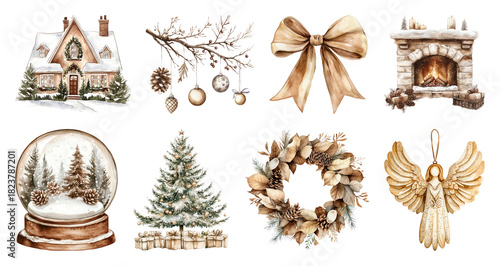 Naklejka premium PNG Vintage Christmas holiday decoration illustrations, element set on transparent background
