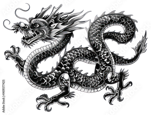 Obraz premium PNG Vintage Dragon dragon illustration white.