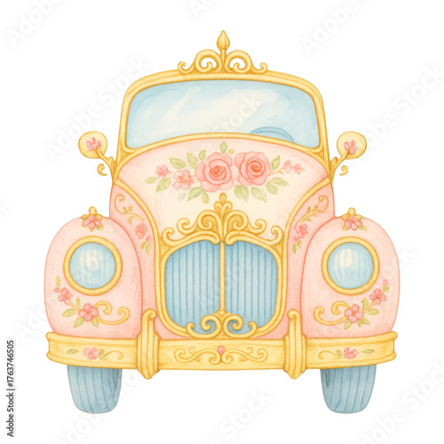 Naklejka premium PNG Vintage floral car illustration