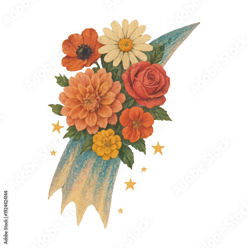 Fototapeta premium PNG Vintage floral cosmic bouquet illustration.